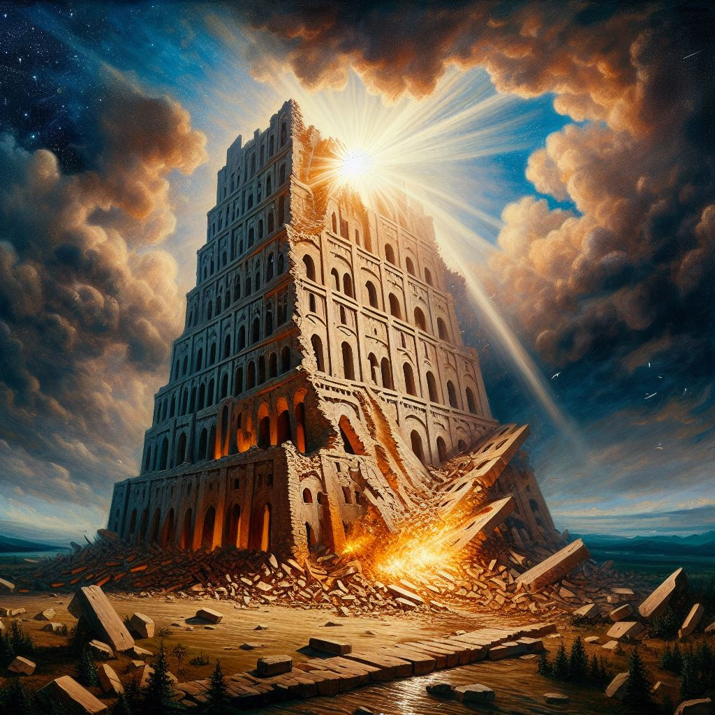 I am reminded of the story of the tower of Babel. In it, a nation of people decide to build a great tower, reaching all the way to heaven. Bold enough to make themselves gods, they toiled and labored on this great elevation of man until the whole thing toppled to the ground.